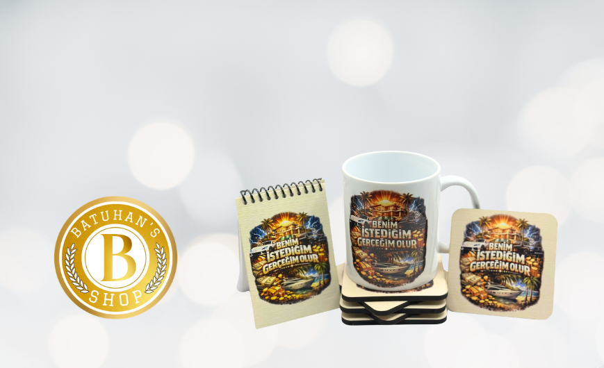 Frekans Uyumlama Seti-2 – Olumlama– Kupa Bardak – Bardak Altlığı - Mini Defter – Bolluk Enerji Seti