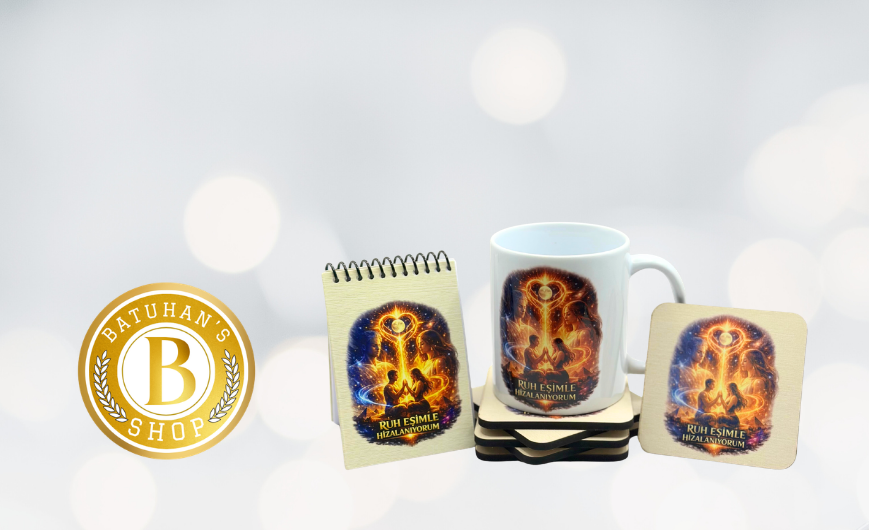 Frekans Uyumlama Seti-5–Olumlama–Kupa Bardak–Bardak Altlığı-Mini Defter– Spiritüel Aşk Seti