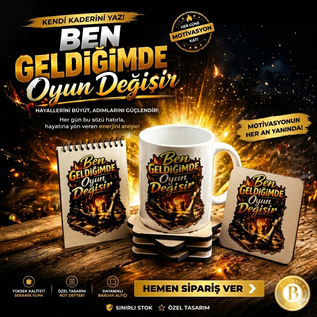Frekans Uyumlama Seti-3–Olumlama–Kupa Bardak–Bardak Altlığı-Mini Defter–Güçlü Duruş Seti